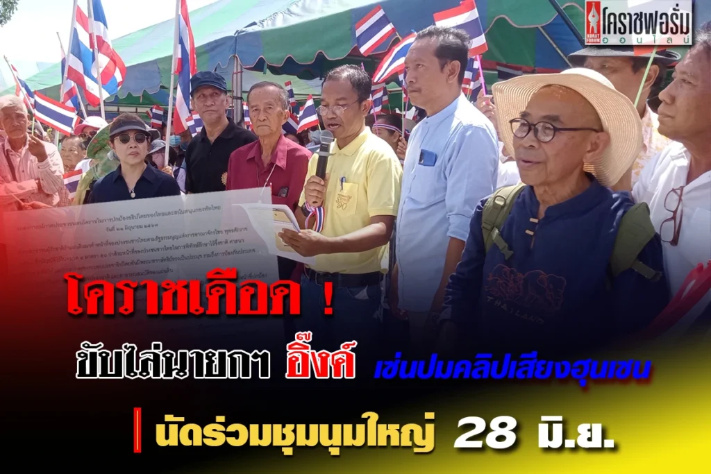 มวลชนโคราชลุกฮือ! จี้ “นายกฯอิ๊งค์” ลาออก เซ่นปมคลิปคุยฮุนเซนลามกองทัพ เตรียมชุมนุมใหญ่ 28 มิ.ย.