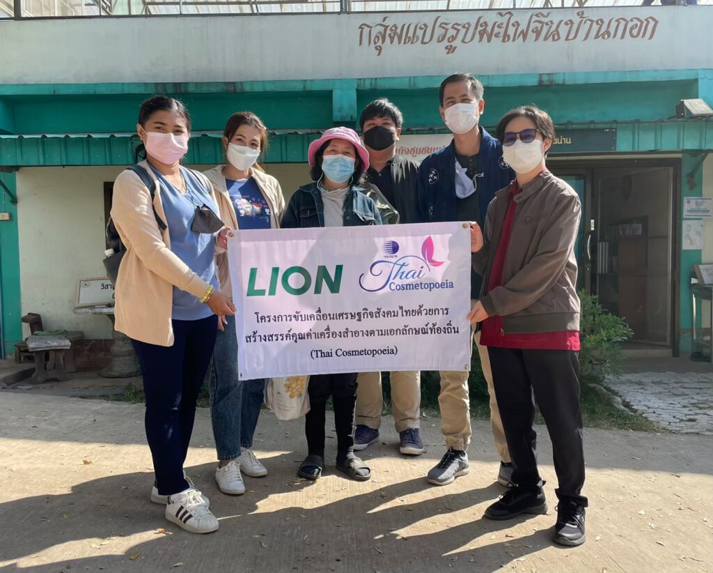 ด้าน นายชูชีพ อภิรักษ์ ผู้จัดการส่วนวิจัยและพัฒนาผลิตภัณฑ์ บริษัท ไลอ้อน (ประเทศไทย) กล่าวว่า “บริษัทมีโครงการพัฒนาชุมชนในพื้นที่จังหวัดน่าน โดยพบว่าวิสาหกิจชุมชนกลุ่มแปรรูปมะไฟจีนบ้านกอก มีผลิตภัณฑ์ของฝากที่แปรรูปจากมะไฟจีน เช่น มะไฟจีนอบแห้ง แยมมะไฟจีน เครื่องดื่มน้ำมะไฟจีน ซึ่งเป็นอัตลักษณ์ของชุมชน เนื่องจากพื้นที่จังหวัดอื่นไม่สามารถปลูกมะไฟจีนให้ติดผลได้ ผลจากการแปรรูปทำให้เกิดเมล็ดเหลือทิ้งจำนวนมาก จากทิศทางของบริษัทฯ ที่ท่านประธานให้ไว้ คือ “เราต้องช่วยกันสร้างวัฏจักรของการเจริญไปด้วยกันอย่างยั่งยืน” ทางบริษัทฯ จึงได้หาแนวทางพัฒนาของเหลือทิ้งทางการเกษตร เพื่อเพิ่มรายได้ให้กับชุมชนตามแนวทางโมเดล BCG”