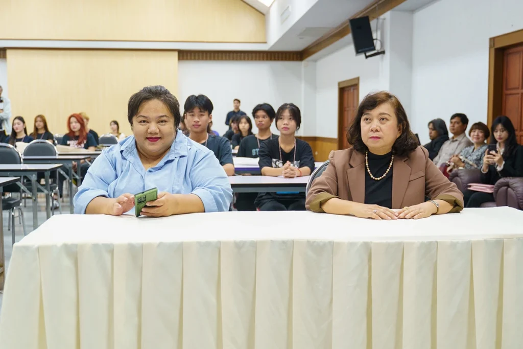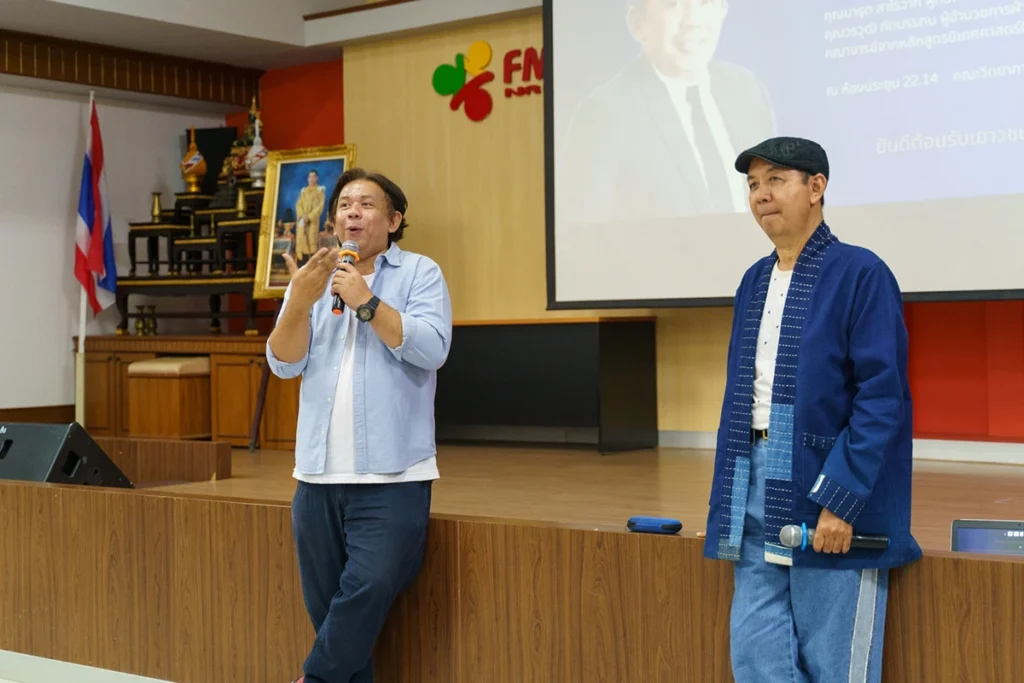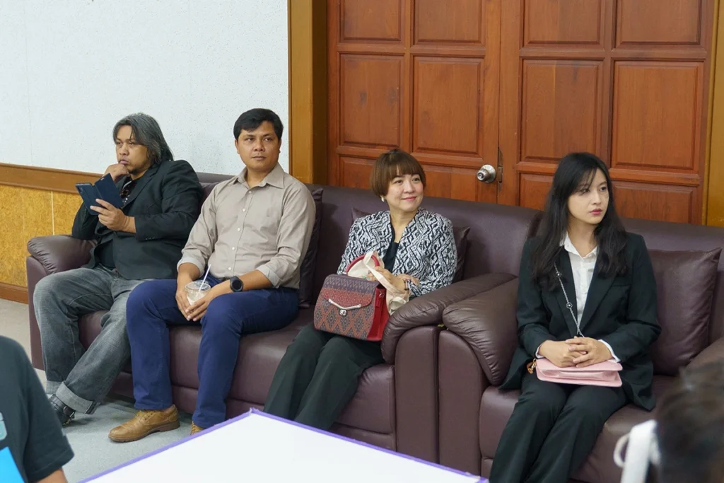 พร้อมด้วย ผู้ช่วยศาสตราจารย์ ดร.พีรวิชญ์ คำเจริญ รองประธานหลักสูตรนิเทศศาตรบัณฑิต สาขาวิชานิเทศศาสตร์ดิจิทัล คณะวิทยาการจัดการ และประธานภาควิชาการ คณะกรรมการสำนักงานส่งเสริมอุตสาหกรรมสื่อสร้างสรรค์โคราช , รองศาสตราจารย์เนตรชนก บัวนาค รองคณบดีฝ่ายวิจัยและเครือข่ายสัมพันธ์ คณะวิทยาการจัดการ และคณะกรรมการสำนักงานส่งเสริมอุตสาหกรรมสื่อสร้างสรรค์โคราช , อาจารย์ ดร.รุ่งกานต์ มูสโกภาส ประธานหลักสูตรนิเทศศาตรบัณฑิต สาขาวิชานิเทศศาสตร์ดิจิทัล คณะวิทยาการจัดการ และคณะกรรมการ สำนักงานส่งเสริมอุตสาหกรรมสื่อสร้างสรรค์โคราช ผู้ช่วยศาสตราจารย์อิสรชัย ลาวรรณา อาจารย์ประจำคณาจารย์จากหลักสูตรนิเทศศาสตร์ดิจิทัล มาร่วมเป็นวิทยากร