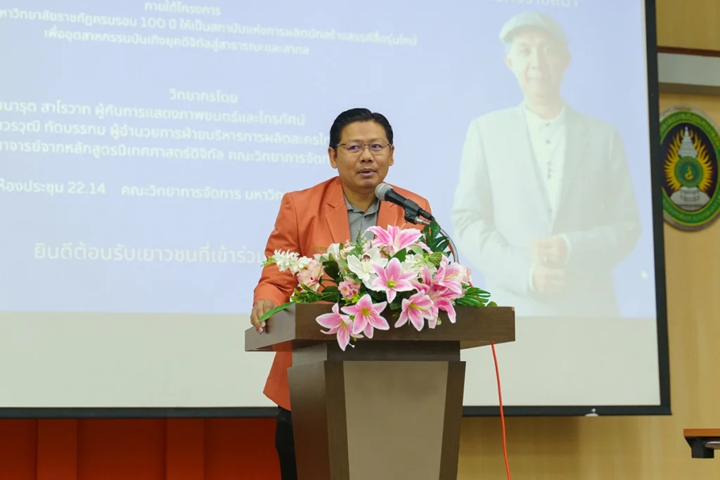 ภายใต้โครงการ การพลิกโฉม มหาวิทยาลัยราชภัฏครบรอบ 100 ปี ให้เป็นสถาบันแห่งการผลิตนักสร้างสรรค์สื่อรุ่นใหม่เพื่ออุตสาหกรรม บันเทิงยุคดิจิทัลสู่สาธารณะและสากล สำหรับการอบรมในครั้งนี้ได้รับเกียรติจาก คุณมารุต สาโรวาท ผู้กำกับการ แสดงภาพยนตร์และโทรทัศน์ชื่อดัง คุณวรวุฒิ ทัดบรรทม คุณวรวุฒิ ทัดบรรทม ผู้อำนวยการฝ่ายบริหารการ ผลิตละครโทรทัศน์ และผู้จัดการ กันตนา เทรนนิ่ง เซ็นเตอร์