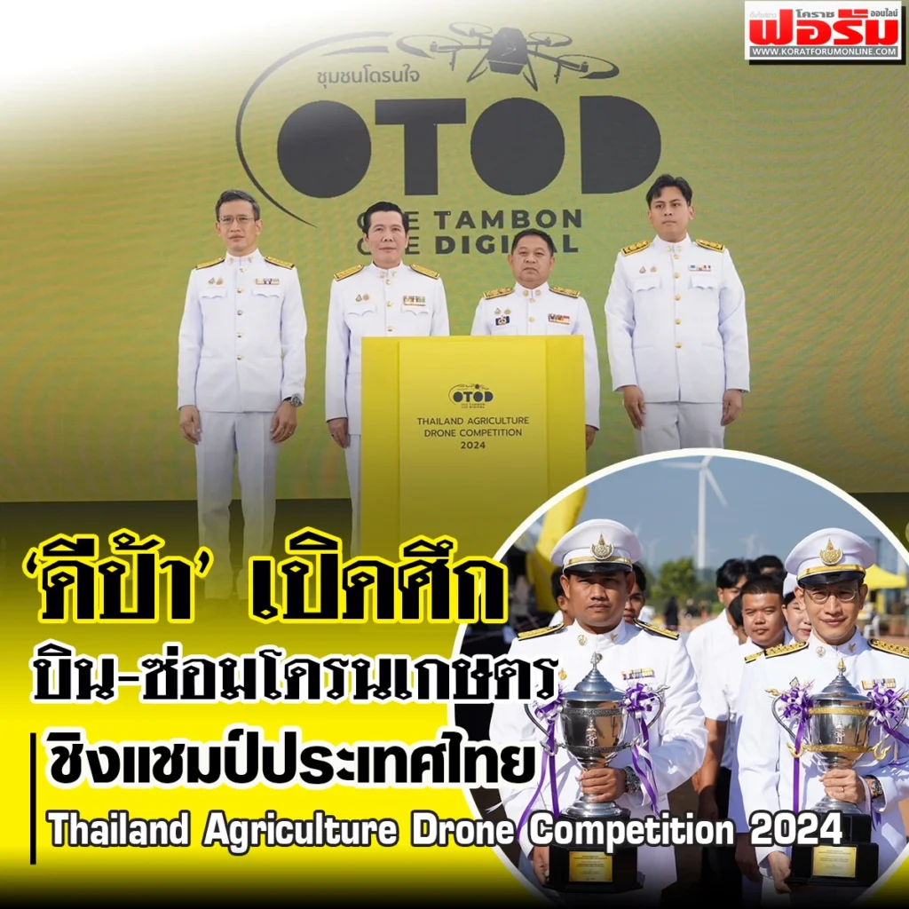วันที่ 4 พฤศจิกายน 2567, จังหวัดนครราชสีมา – กระทรวงดีอี โดย ดีป้า เปิดเวทีประชันทักษะการบินและ การซ่อมโดรนเกษตร รอบชิงชนะเลิศ ระดับประเทศ Thailand Agriculture Drone Competition 2024 ในโครงการ 1 ตำบล 1 ดิจิทัล (ชุมชนโดรนใจ) พร้อมเผยโฉมแชมป์บิน – ซ่อมโดรนเกษตรครั้งแรกของไทย เตรียมพร้อมต่อยอดยกระดับทักษะเกษตรกรและช่างซ่อมชุมชนทั่วประเทศ