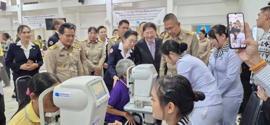 (22 ต.ค.68) ที่หอประชุมที่ว่าการอำเภอปากช่อง จ.นครราชสีมา “โครงการแว่นตาผู้สูงวัยในสมเด็จพระเทพรัตนฯ” โดย แว่นท็อปเจริญ นำโดย นายนพศักดิ์ ตรีพรชัยศักดิ์ ประธานเจ้าหน้าที่บริหาร แว่นท็อปเจริญ ร่วมกับ มูลนิธิสงเคราะห์เด็กของสภากาชาดไทย พร้อมได้รับเกียรติจาก นายชัยวัฒน์ ชื่นโกสุม ผู้ว่าราชการจังหวัดนครราชสีมา เป็นประธานในพิธี และร่วมกิจกรรมลงพื้นที่เพื่อตรวจวัดสายตา ตรวจสุขภาพดวงตา และประกอบแว่นใหม่ฟรีให้แก่ผู้สูงวัยในจังหวัด นครราชสีมา โดยทีมผู้เชี่ยวชาญด้านสายตาพร้อมเครื่องมือตรวจวัดสายตาที่ครบครันได้มาตรฐานจากแว่นท็อปเจริญ