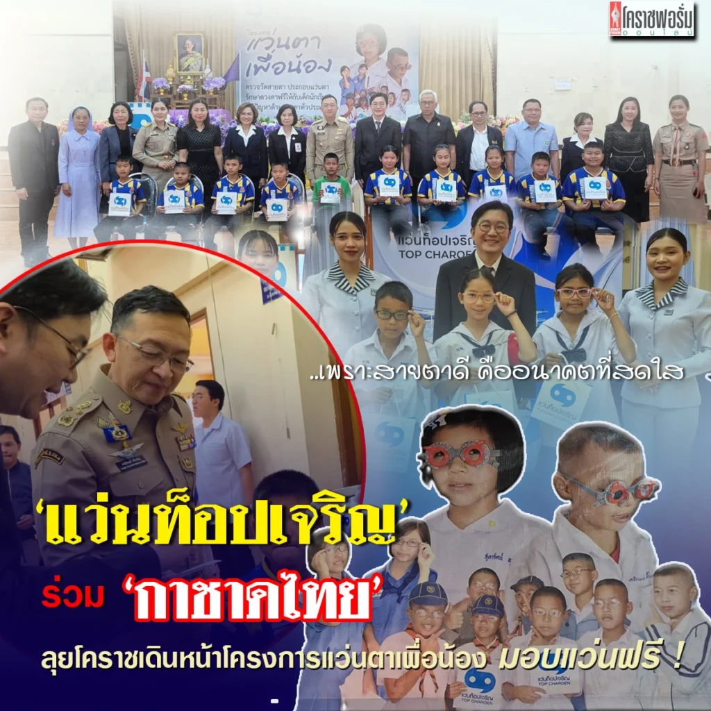 นครราชสีมา – แว่นท็อปเจริญ ผนึกกำลังมูลนิธิสงเคราะห์เด็กของสภากาชาดไทย เดินหน้า “โครงการแว่นตาเพื่อน้อง” ลงพื้นที่อำเภอห้วยแถลง ตรวจวัดสายตา–ตัดแว่นฟรีให้เด็กและเยาวชนด้อยโอกาส เติมโอกาสการมองเห็นที่ชัดเจน เพื่อคุณภาพชีวิตและการเรียนรู้ที่ดีขึ้น