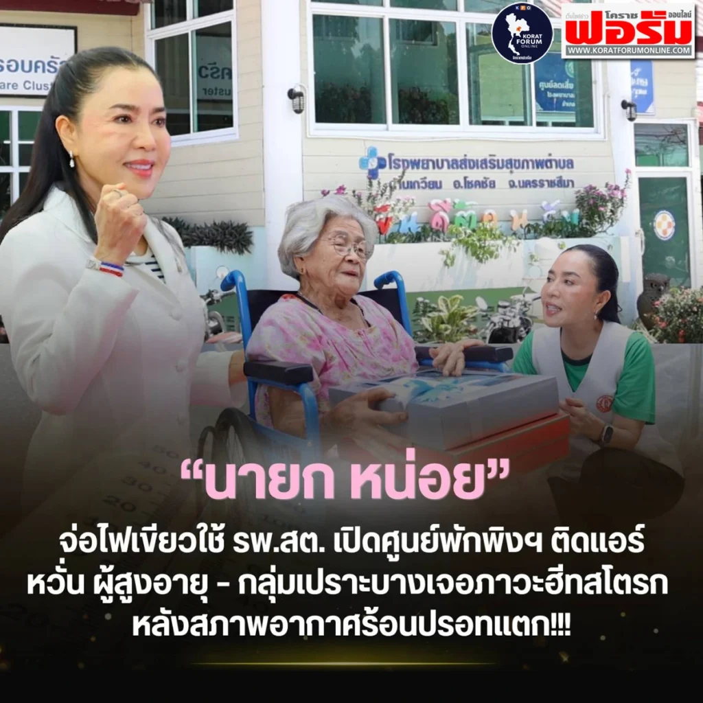 “ยลดา หวังศุภกิจโกศล” นายก อบจ.นครราชสีมา เดินหน้ามาตรการเร่งด่วน เตรียมเปิดพื้นที่ รพ.สต.ในสังกัดเป็น “ศูนย์พักพิงคลายร้อนติดแอร์” ช่วงเวลากลางวัน รองรับผู้สูงอายุและกลุ่มเปราะบาง หลังอุณหภูมิพุ่งสูง 40 องศา เสี่ยงภาวะฮีทสโตรก มั่นใจช่วยลดความสูญเสียและคลายความกังวลให้ครอบครัว