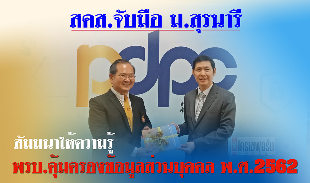 สคส. จับมือ ม.สุรนารี จัดกิจกรรมบรรยายให้ความรู้เกี่ยวกับพระราชบัญญัติคุ้มครองข้อมูล ส่วนบุคคล พ.ศ. 2562 สร้างการรับรู้ ป้องกันการละเมิดข้อมูลส่วนบุคคล (PDPA)คาดหวังช่วยลดปัญหาการละเมิดข้อมูลส่วนบุคคลทั้งโดยเจตนาหรือโดยประมาทได้